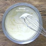 3 蛋黄酱: 把蛋黄和细砂糖混合,打至浓稠。加入淡奶拌匀。把半锅水滚开, 调至中火, 隔着热水把蛋黄浆煮至浓稠。离火后继续搅拌至顺滑。搁置至冷却。