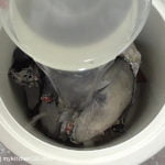 - 用锤子敲击把椰肉敲成小块。用汤匙,抹酱用的刀或薄铁片把椰肉取出切成小块。