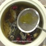 9 食用前15分钟把多余的油捞起,加入用冷水浸泡过的枸杞。适量的盐调味
