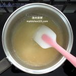 2. 用低温把已浸泡好的鱼胶粉加热,搅拌至完全融化。