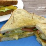 5. 再加上另1片面包后,用牙签把三文治串在一起。