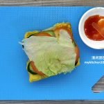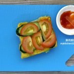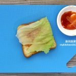 1. 把已煎香的土司面包抹上少许辣椒酱(选择性),加上1片生菜。