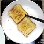 1. 把土司面包抹上牛油,放入平底锅里煎香。