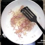2. 把少许食油加热,放入洋葱丝,拌炒至软化。