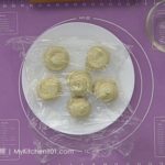 9 把面皮卷起来,卷的时候稍微拉一拉。