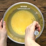 - 把低筋面粉和泡打粉混合过筛,然后再过筛加入蛋黄浆,搅拌均匀。