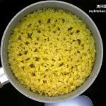 3. 加入盐和糖,拌至混合,以中火炒5分钟,然后调低至中小火继续炒6-7分钟,直到内馅不沾锅,所得的分量是约240克。