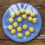 4. 搁置一旁至冷却后,把内馅分成18个(每个13克),用保鲜膜盖上避免变干。