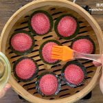 5. 蒸好后,在红龟糕表面抹上少许油。