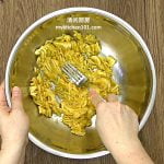 6 把蛋白霜分4次加入面糊中,用人工搅拌器轻轻混合。
