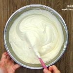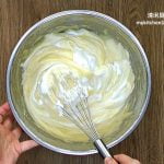 6 分4次把蛋白霜加入面糊中,用人工搅拌器轻轻混合。