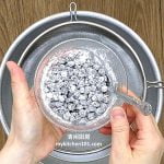 把5克低筋面粉加入85克巧克力粒,把巧克力粒裹上粉。