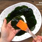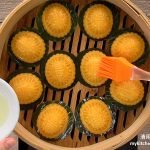 5. 蒸好后,在红龟糕表面抹上少许油。