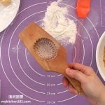 2 把红龟糕模具裹上少许糯米粉,把多余的去除。(温馨提示:这食谱用的红龟糕模是35克的,约 6 cm x 5.5 cm。)