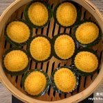 3. 准备1汤匙的花生馅,把粉团按成一个碗,装入花生馅,把内馅完全包上,压至紧实后轻轻搓圆。 放入模具里,用掌心轻轻按入,把模具轻轻敲击桌面以让粉团脱模,放在一片香蕉叶上,然后排入蒸笼里。