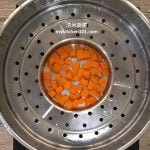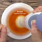 2. 把80克的清水和蒸熟的橙番薯一起搅拌至细腻,搁置至冷却备用。