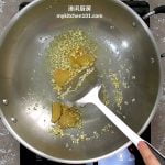 4 把3汤匙食油加热,加入老姜和蒜头爆香。