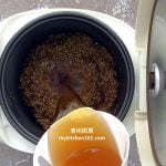 - 把炒好的米放入电饭锅,加入850 毫升清水(可加入香菇水),选择”白饭”设置。