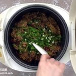 - 饭煮好后,加入青葱粒拌匀,继续焖多5分钟即可享用。