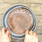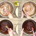 6 分数次把粉类和牛奶轮流加入,翻拌至完全混合。加入玉米油,拌至混合。