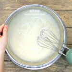 4 把1公升的清水和400毫升的热水(热水炉取出的热水)混合在比搅拌碗大的钢盆以调出约45°C/113°F的温水。