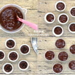 7 把面糊倒入量杯。把少许面糊倒入6个已铺上蛋糕纸托的烤杯(7.5-cm),加入一些巧克力粒(约½ 汤匙),再加入面糊直到90%满,然后排入蒸笼里。