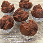 - 把面糊倒入量杯。把少许面糊倒入6个已铺上蛋糕纸托的烤杯(7.5-cm),加入一些巧克力粒(约½ 汤匙),再加入面糊直到90%满,然后排入蒸笼里。