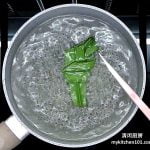 3. 把另270克清水、细盐、砂糖和香兰叶混合在小锅中,加热至滚开,煮到闻到香兰香味。