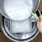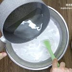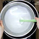 5. 把½大锅的水滚开,调至中火,隔着热水把米浆煮约3分钟半至4分钟,直到稍微浓稠。