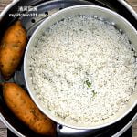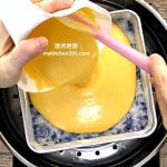 1 把橙薯糊倒在已蒸好的糯米饭上。