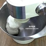 - 用装有搅面勾的搅拌器,以”2号“速度把面团搓揉5分钟,直到成光滑的面团。(温馨提示:用手搓就搓6-7分钟左右,如果揉搓期间面团黏手就边搓边沾粉。)