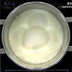 - 把全脂牛奶和砂糖混合在锅里(用锅底比较厚的锅以避免烧焦)。