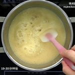 - 加热至滚开后,调至中火继续煮19-20分钟,不时搅拌,直到稍微浓稠。