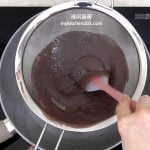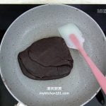 3. 把红豆泥过筛入不沾平底锅。(温馨提示:制作红豆馅的红豆必须浸泡隔夜才能煮至软绵,这样过筛后才不会有很多渣。)