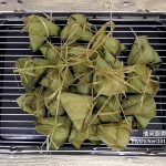 3 把粽子裹好,然后用竹绳绑好 (先把竹绳过水后滤干,才不会容易)。