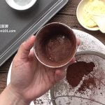 - 在模具内部 (容量:80 ml) 抹上牛油,洒上可可粉/面粉,把多余的倒出。