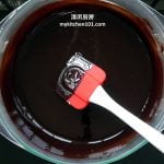 - 把巧克力和牛油放入搅拌碗,隔水加热至融化,拌匀。