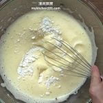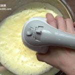 - 把蛋,糖和盐放入搅拌碗,用搅拌器打至浓稠并成淡黄色。