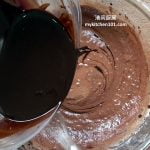 - 一边搅拌,一边慢慢的把巧克力酱加入,充分拌匀。