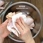 用厨房纸巾把已洗净的鸡翼抹干。