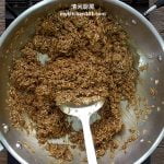 3 糯米:热锅,加入食油,放入蒜头和姜片以中小火爆香后,加入糯米拌炒。把所有调味料加入清水拌匀,加入糯米后炒香。