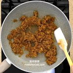 2 以中火把椰糖椰丝炒至酱汁收干。