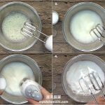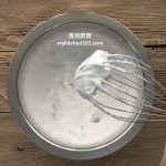 12. 用搅拌器把植物性鲜奶油打发,放入冰箱冷藏备用。(温馨提示:用不锈钢搅拌碗来打鲜奶油。先把搅拌碗和搅拌器放入冰箱冷冻30分钟直到非常冷后才使用。)