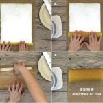 14 在蛋糕开始卷起的那端划上浅浅的2刀 (约1吋的距离,不要切断)。