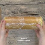 17. 用保鲜膜把蛋糕卷包好,放入冰箱冷藏1-2小时后才切。