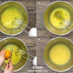 - 把低筋面粉、泡打粉和苏打粉混合过筛,然后再过筛加入蛋黄浆,搅拌均匀。