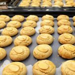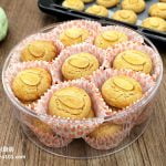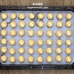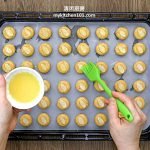 制作过程简单,先烤香杏仁片制成杏仁粉,再加入面粉、糖、盐和牛油等材料搓成粉团,然后把粉团搓成小球后把蛋黄液刷在表面,以160°C/320°F烤制30分钟就完成了。