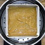 把已煮至浓稠的黑糖粉浆倒入已准备好的烤盘中(让表面不均匀以帮助上下层粘合),以中火蒸16分钟。