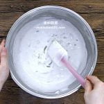 依照黑糖粉浆的做法,隔水加热把白色粉浆煮至浓稠后离火,然后继续搅拌至顺滑。
