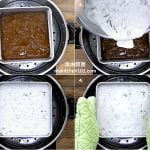 把已煮至浓稠的白色层倒在已蒸熟的黑糖层上,再以中火蒸16分钟。